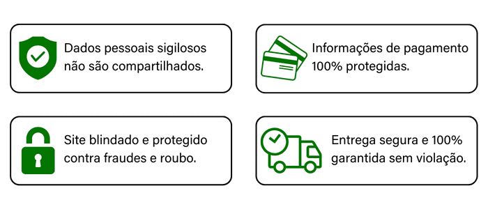 Este site é 100% protegido contra recursos de má intenção. Suas informações pessoais são totalmente sigilosas segundo a nossa Política de Privacidade e a entrega é garantida.